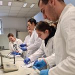 U četvrtak, 29. siječnja, u laboratoriju Odjela za kemiju Sveučilišta u Osijeku održana je još jedna zanimljiva i edukativna radionica u sklopu naše dugogodišnje suradnje s Gimnazijom Vukovar. Naše gošće, pod vodstvom prof. Antonije Milić, imale su priliku ući u svijet balneoloških istraživanja. Uz pomoć izv. prof. dr. sc. Elvire Kovač-Andrić, dr. sc. Nikoline Filipović i mag. chem. Stjepana Šarića, učenice su analizirale uzorke vode iz vukovarskih geotermalnih izvora. Detaljno su napravile fizikalno-kemijska analizu: od određivanja pH vrijednosti i električne vodljivosti do analize kationa kalcija i magnezija te aniona klorida. Kroz praktične vježbe bojanja plamena i određivanja tvrdoće vode, učenice su istraživale jedinstveni hidrogeološki sustav našeg kraja. Ovakav pristup ne samo da razvija praktične laboratorijske vještine i znanstvenu pismenost, već potiče i učenike da prepoznaju važnost prirodnih resursa u svom neposrednom okruženju. Ponosni smo na naše mlade kemičarke!